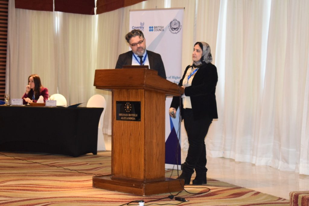 بعد ذلك قدمت دكتورة رشا عبد العزيز دكتور رامي ايوبي مرة أخرى حيث عرف الحاضرين بفريق العمل من جامعة كوفنتري.